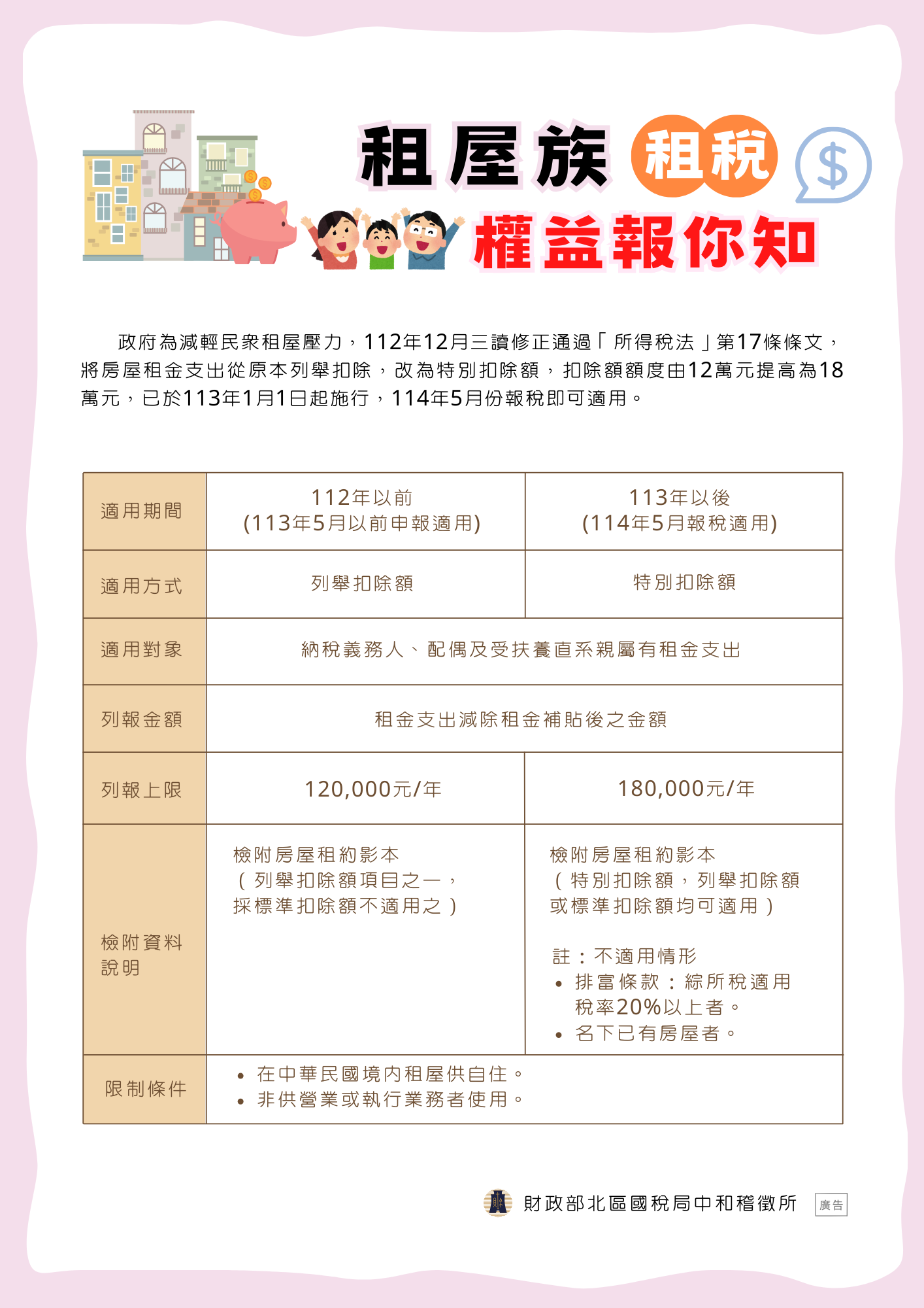 政府為減輕民眾租屋壓力,112年12月三讀通過「所得稅法」第17條條文,