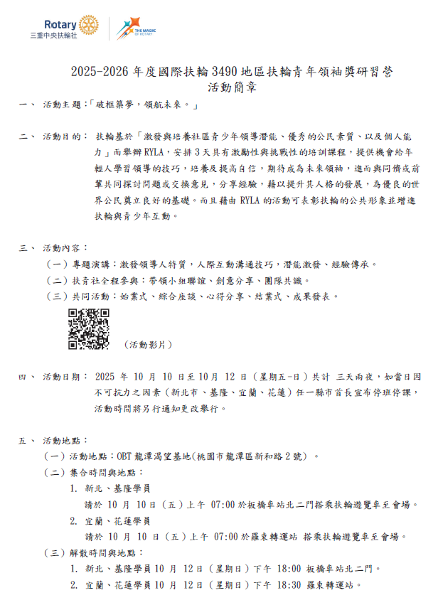 [活動公告] 2025-2026年度青年領袖研習營