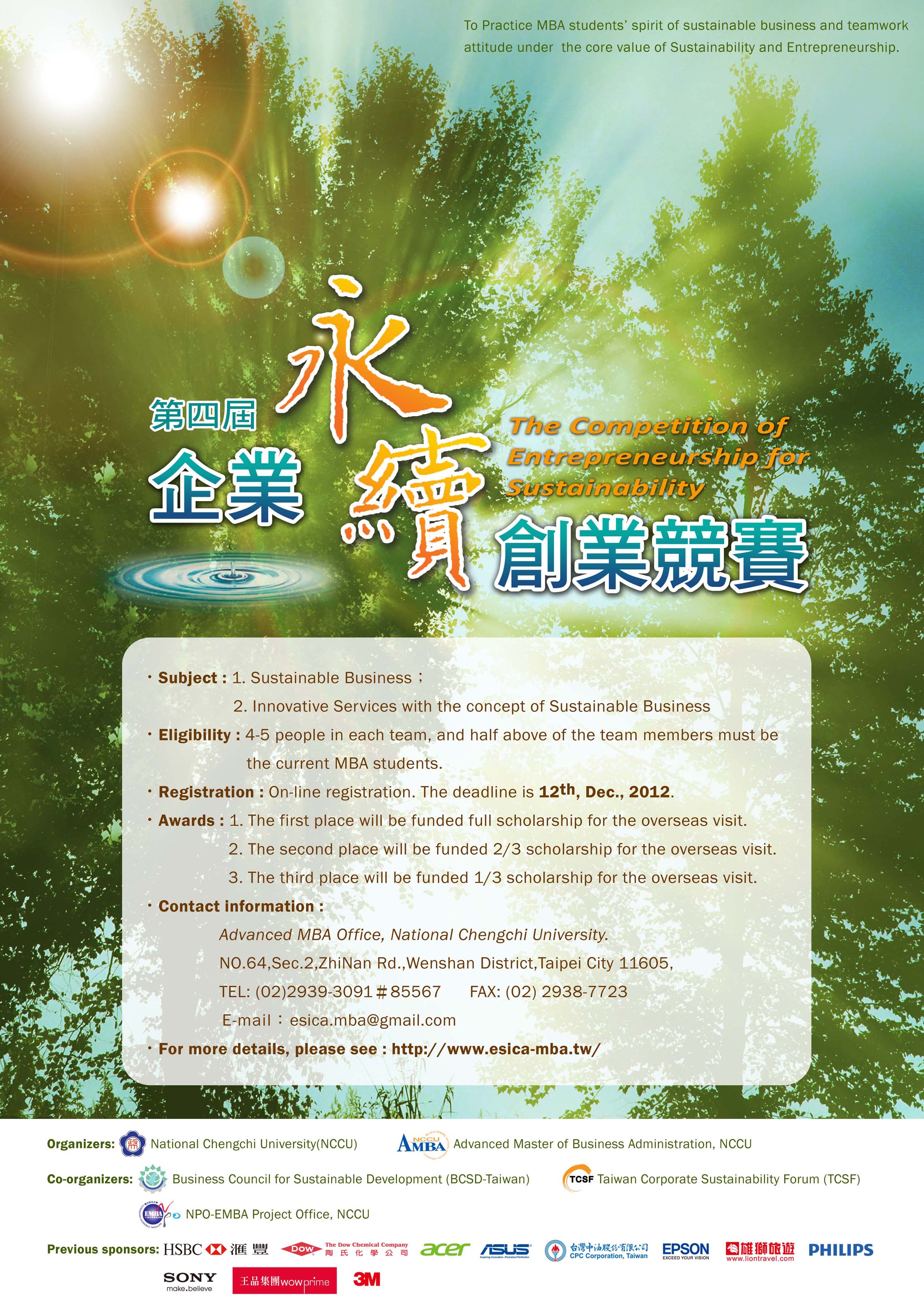 第四屆企業永續創業競賽,報名至101年12月12日止