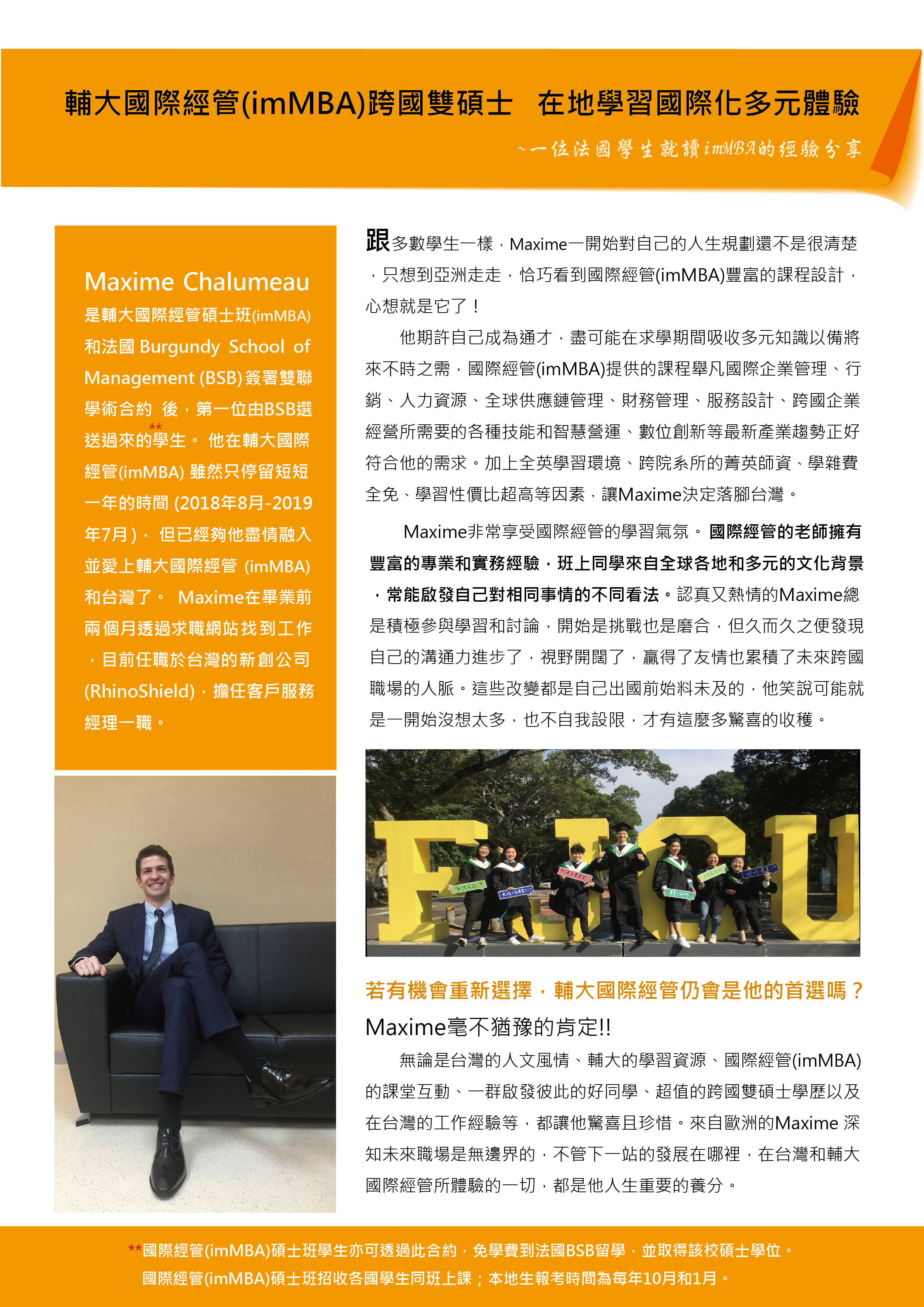 國際經管imMBA跨國雙碩士 在地學習國際化多元體驗