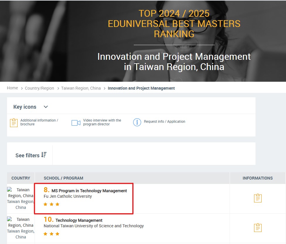 輔大科管EMBA榮獲EDUNIVERSAL 2025 最佳碩士遠東區第8名