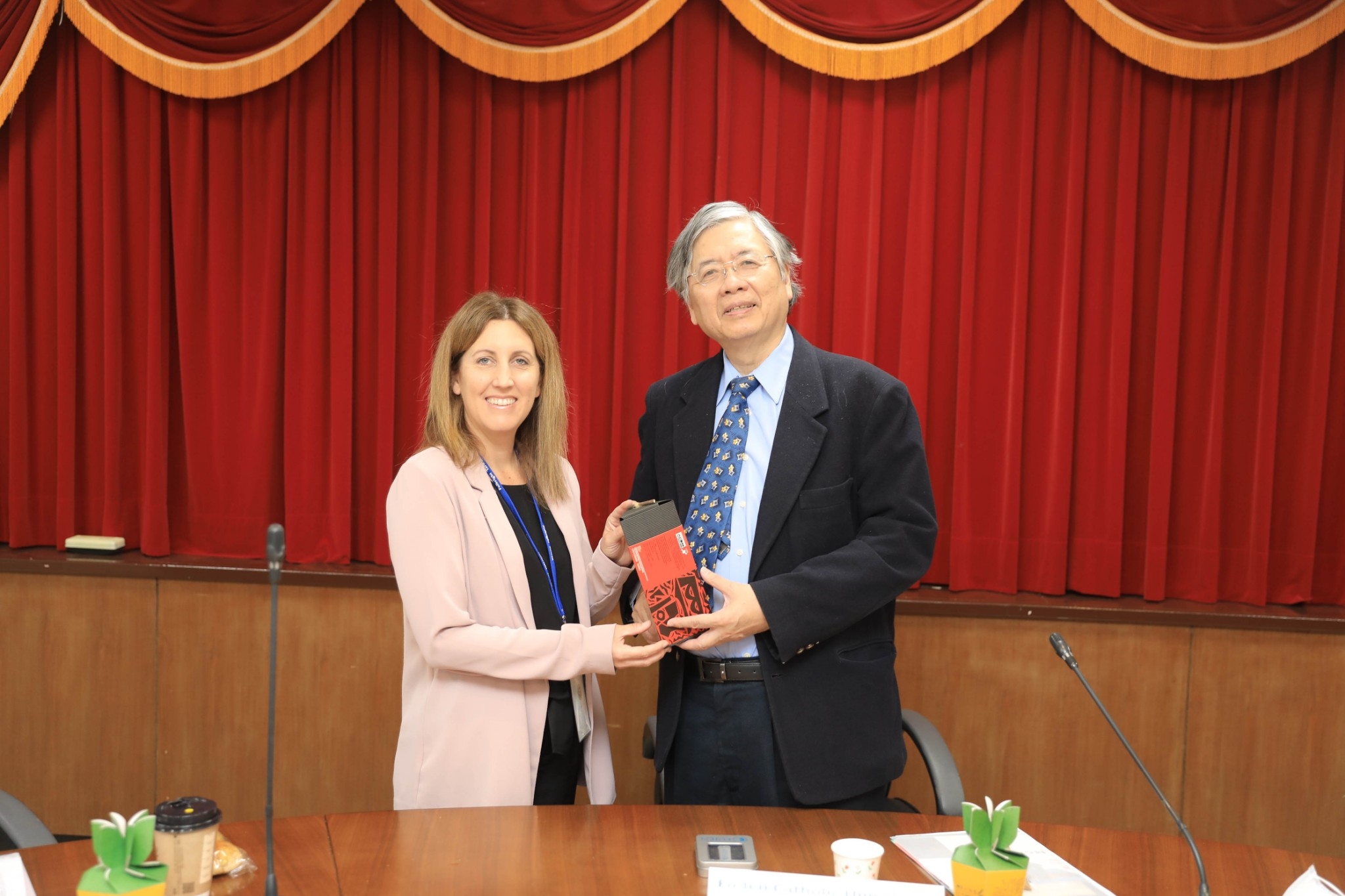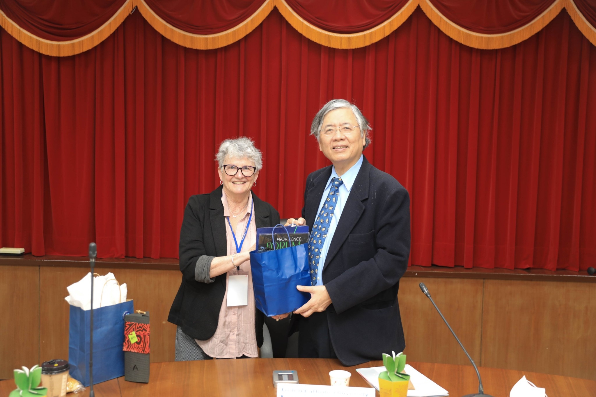 輔仁大學江漢聲校長與傅爾布萊特學術交流基金會代表交換禮物