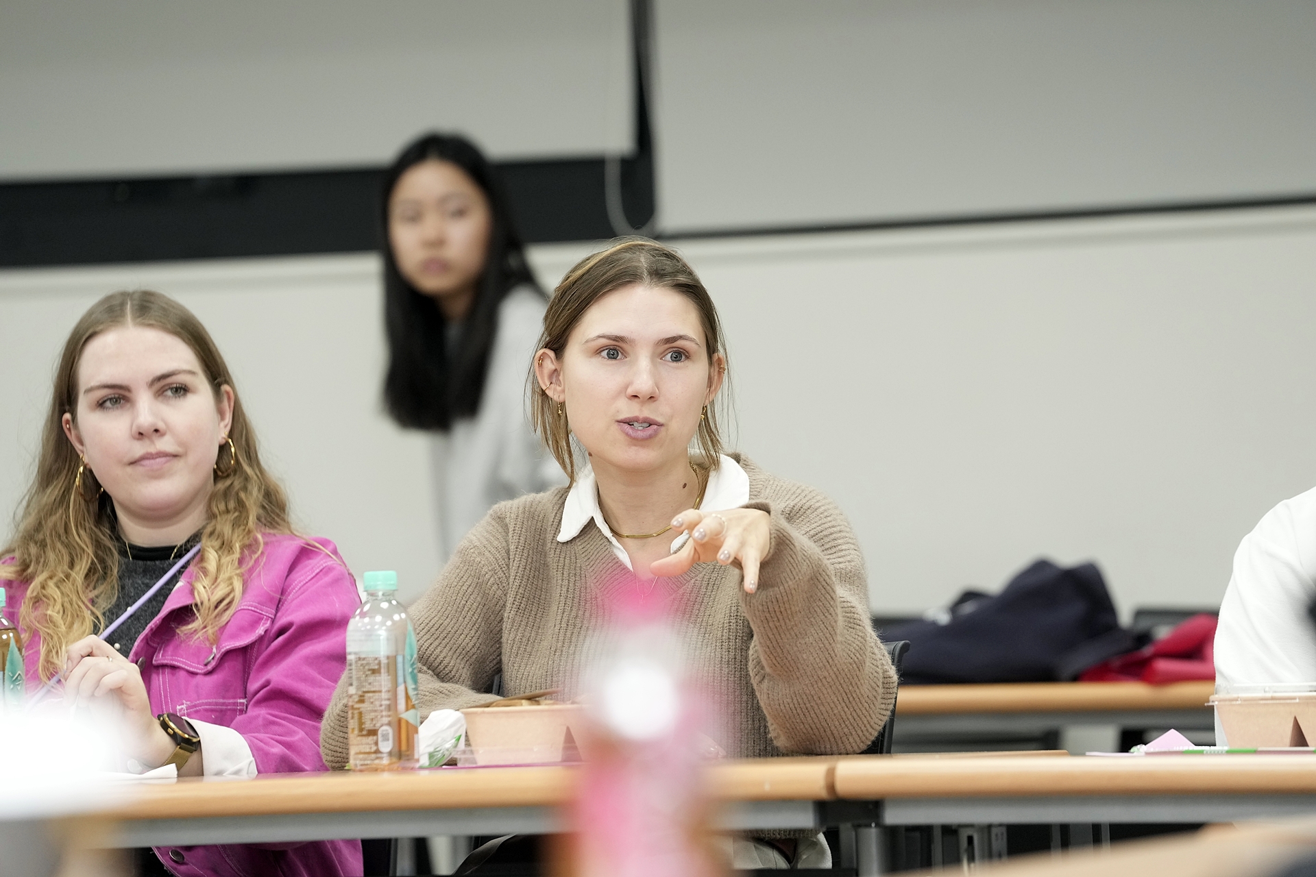 來自德國的學生詢問校長為什麼選擇來到輔仁大學任職 ? 校長真誠地回答道,雖然曾收到多所國內外學校的邀約,但他希望能回到家鄉,利用自身的國際經驗與專業背景,為台灣的高等教育注入新活力。他表示,最終選擇輔仁大學,則是因為這所學校的定位和特色與其他學校截然不同,具備極大的發展潛力。他強調,他的使命是將國際化的視野與資源融入學校,推動學校在國內外的進一步發展。