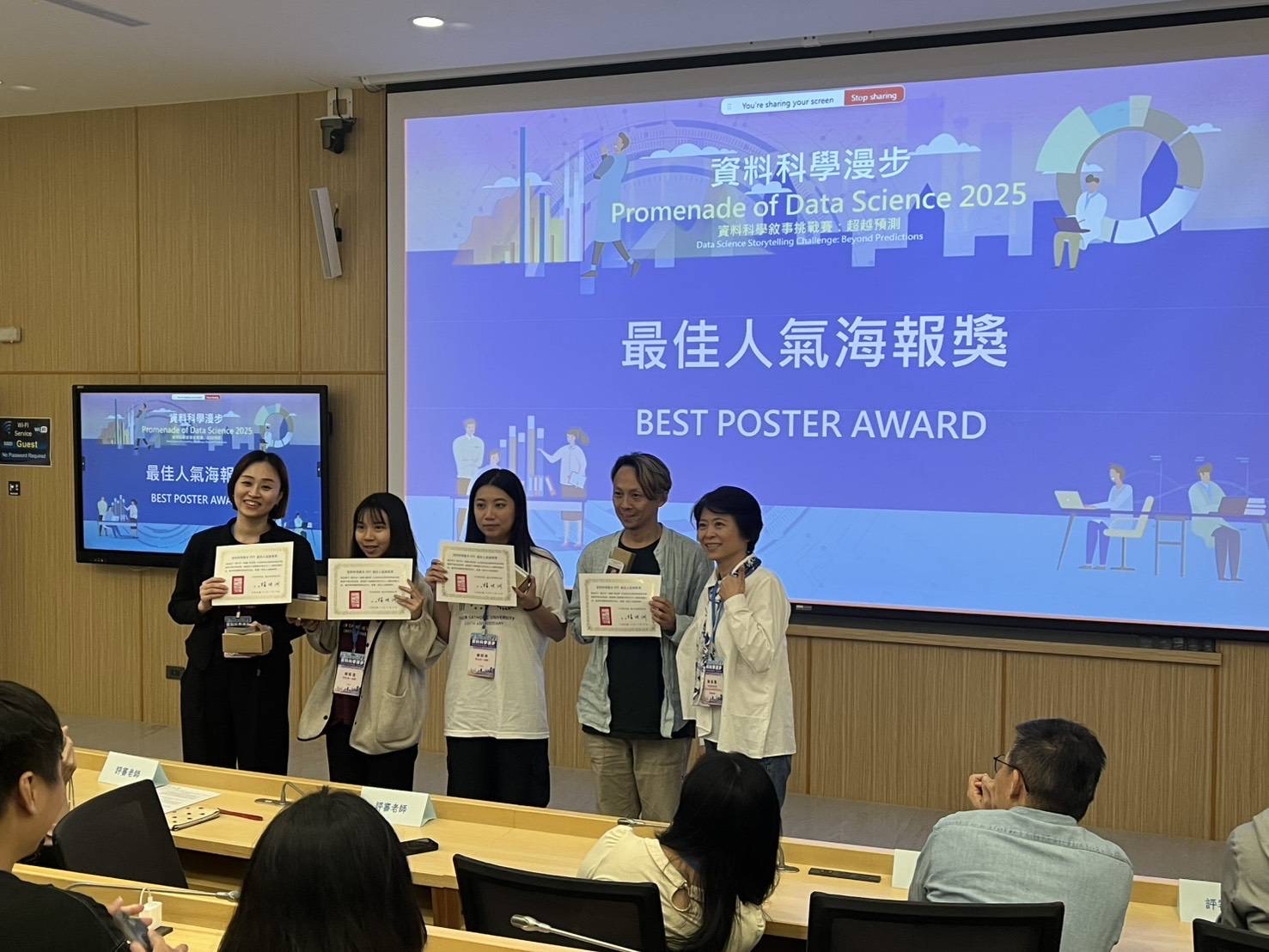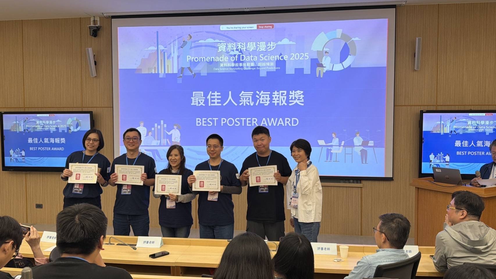 【統計資訊學系應用統計碩士在職專班供稿】輔仁大學統計資訊學系應用統計碩士在職專班再創佳績!今年由中央研究院主辦的「資料科學漫步競賽」吸引全台各大專院校共 73 支隊伍參賽,最終僅有 38 隊成功晉級決賽。本校應用統計碩士在職專班共有兩組學生從激烈競爭中脫穎而出,不僅全數入圍決賽,更雙雙榮獲海報獎,其中一組更勇奪全場第一名,力壓台大、政大、清大等多所頂尖學校隊伍,展現強勁實力與亮眼表現。
