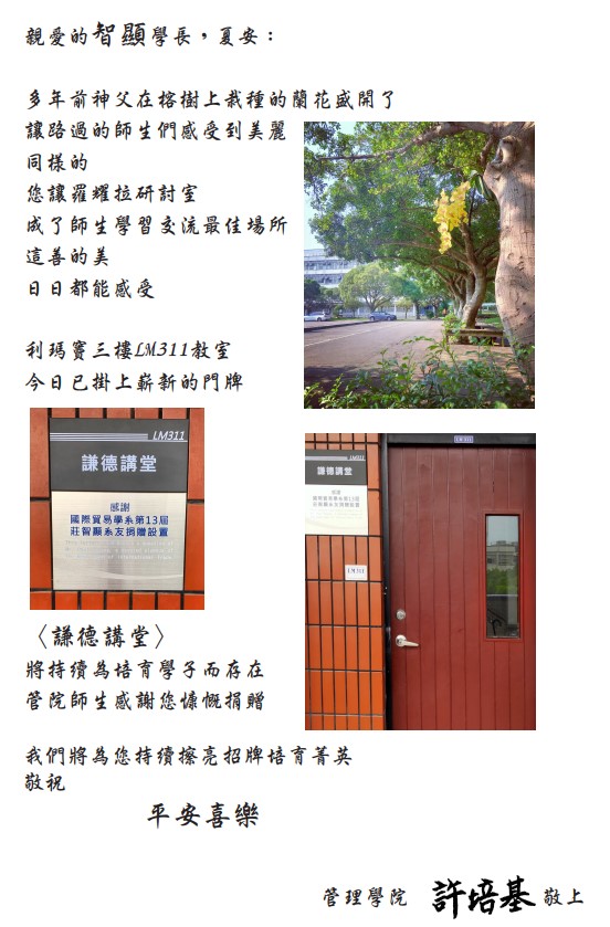 感謝國貿系莊智顯學長捐贈LM311空間命名